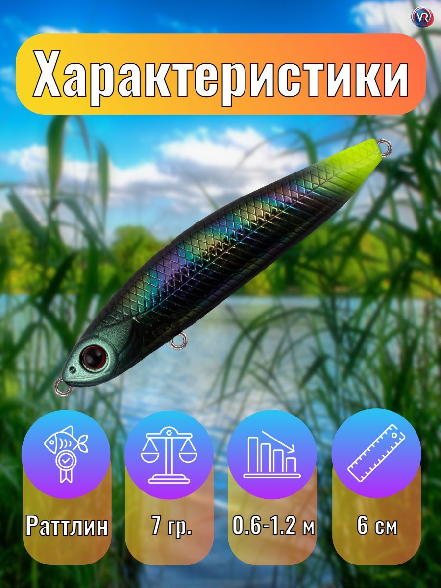Технические параметры: тонущий (S), длина 60 мм, вес 7,0 гр., заглубление 0,6-1,2 м. Воблер класса «стикбэйт» для ловли голавля, жереха, окуня, щуки, и других хищных рыб на реках, прудах и озерах. Возможна ловля запускной форели на платных водоемах. Особенности дизайна: STRESS 60S - безлопастной воблер с классической для стикбэйтов веретенообразной формой тела, плавно сужающейся к хвосту приманки. По бокам воблера имеются две разделенные боковой линией рельефные фактуры поверхности. Верхняя часть выполнена в виде ромбовидных насечек-чешуек, нижняя (вплоть до брюшка) в виде косых насечек. Головная часть воблера рельефно имитирует жаберные крышки рыбки, а 3D глаза и ноздри дополняют реалистичность дизайна всей приманки.STRESS 60S - тихий воблер, встроенная шумовая камера отсутствует. Приманка оснащена двумя тройниками соответствующего размера, а также надежной фурнитурой и заводными кольцами. Воблер имеет современное качественное лакокрасочное покрытие и широкий выбор расцветок в каталоге. Заброс и анимация: благодаря отсутствию лопасти и своей компактности STRESS 60S при использовании соответствующей снасти улетает на 35-40 метров. Анимация STRESS 60S типична для воблеров данного класса. Основные типы проводок стикбэйта: равномерная, равномерная с остановками («стоп энд гоу»), рывковая (твичинг).При равномерной проводке рекомендуется изменять скорость движения приманки. Данный прием безотказно действует на жереха, голавля и других хищных рыб. На паузах STRESS 60S медленно тонет, активно покачивая боками, при этом, сохраняя горизонтальное положение в воде. При твичинге стикбэйт уходит в стороны, совершая галсы влево и вправо в толще воды. Основные трофеи STRESS 60S: жерех, голавль, язь, окунь, щука, а также запускная форель на платных водоемах. Рекомендуемый комплект снастей: удилище длиной 7-7,8 футов быстрого строя, с верхним тестом до 10-15 гр., катушка размера 2000-3000, шнур #0.6-0.8 по японской классификации.