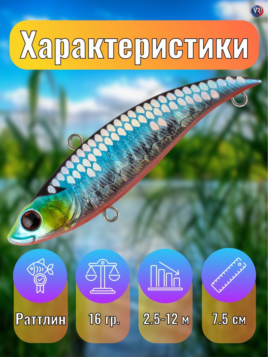 Воблер класса VIB для ловли на средних глубинах «в заброс» и вертикальным джиггингом. Целевые трофеи – судак, берш, щука и крупный глубинный окунь.