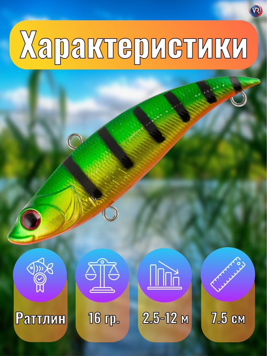 Воблер класса VIB для ловли на средних глубинах «в заброс» и вертикальным джиггингом. Целевые трофеи – судак, берш, щука и крупный глубинный окунь.