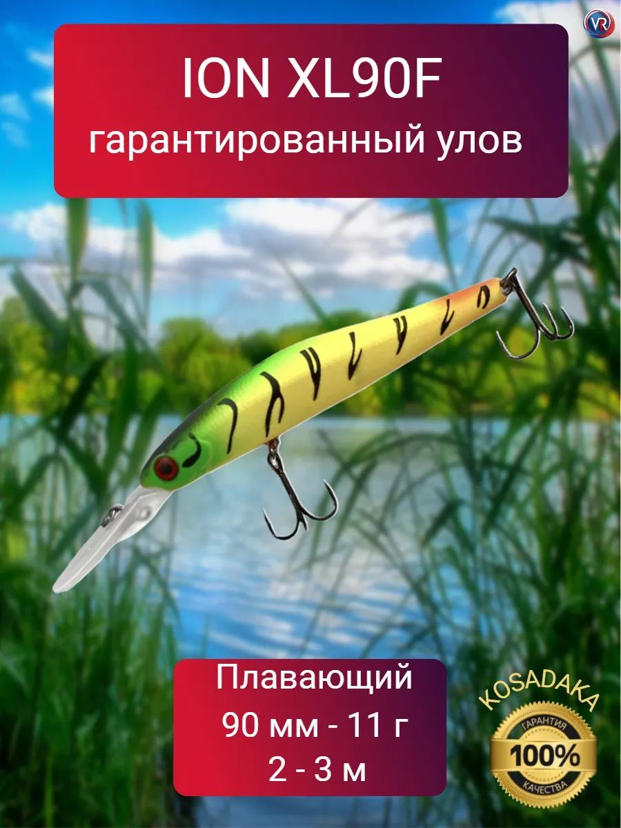 Воблер Kosadaka Ion XL 90F IonxL90F 11гр - воблер минноу, легко заныривает, уверенно придерживаясь заданного горизонта во время проводки. При ловле на такой глубине положительная плавучесть Ion XL выручит, если воблер встретится с препятствием - сильно заросшим участком или корягой. Приманка имеет лопасть внушительного размера, которая выступает в качестве "отбойника". Подвижный шарик внутри корпуса создает заметный акустический эффект, который выманивает хищника из укрытия. Она оснащена системой дальнего заброса, помогающей достать до удаленных локаций. Как типичный минноу, покажет наиболее привлекательную игру на рывковой проводке, но простая равномерка или стоп-н-гоу тоже не оставят рыбака без улова. Охотнее всего на этот воблер клюет щука и крупный окунь.