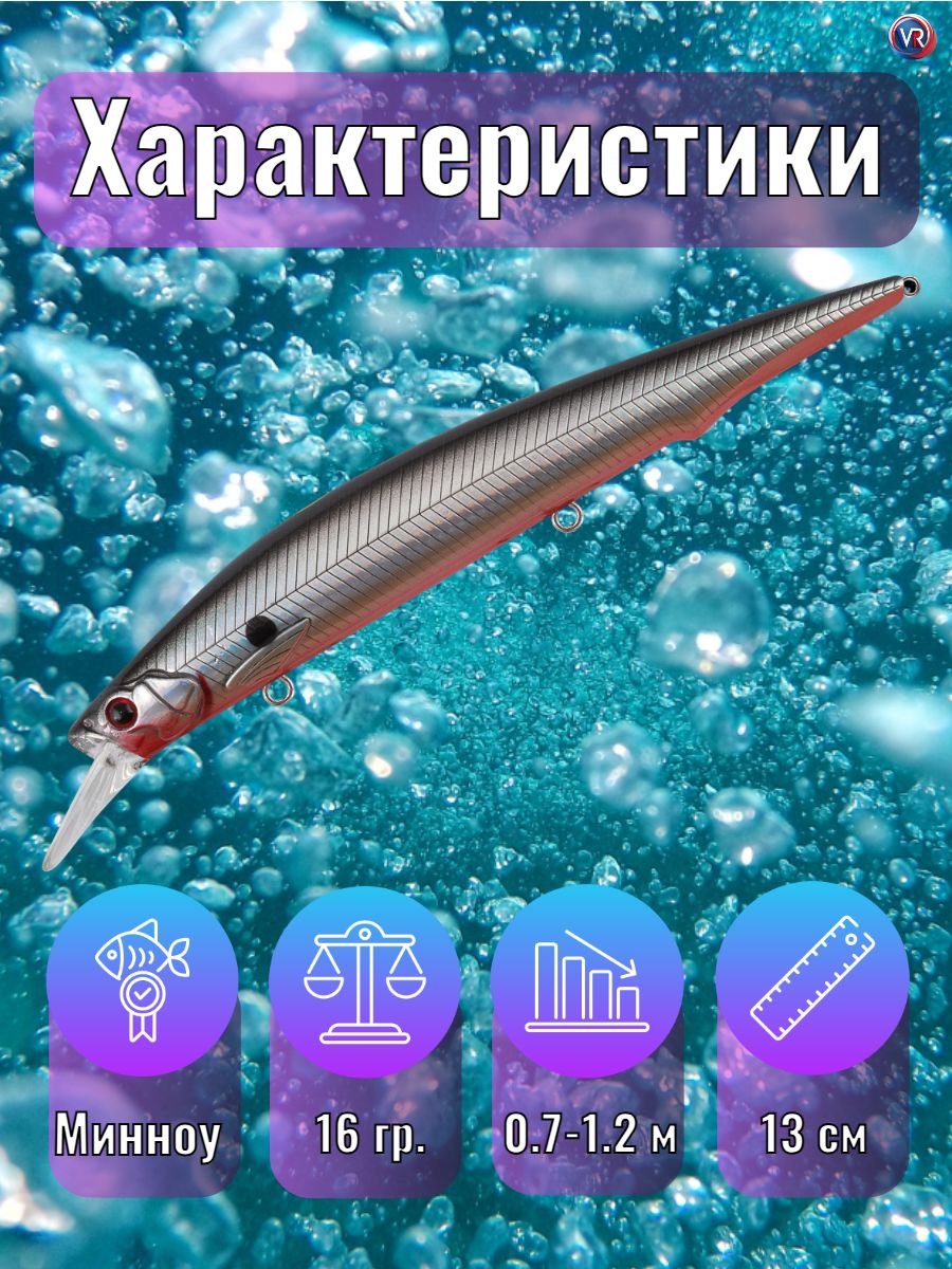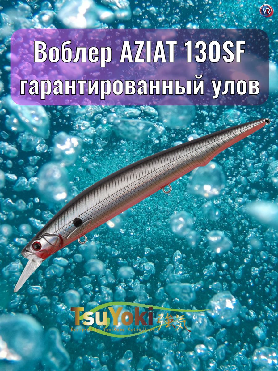 Технические параметры: медленно всплывающий (SF), длина 130 мм, вес 16,0 гр., заглубление 0,7-1,2 м. Крупный воблер класса «минноу» для ловли щуки, судака, жереха и других хищных рыб на реках, прудах и озерах. Особенности дизайна: AZIAT 130SF – крупный воблер-минноу узкой вытянутой формы, плавно сужающейся к хвосту приманки. По бокам воблера имеются две разделенные боковой линией рельефные фактуры поверхности в виде косых насечек. Головная часть воблера рельефно имитирует жаберные крышки рыбки, а 3D глаза дополняют реалистичность дизайна всей приманки. Встроенная система дальнего заброса одновременно является системой баланса приманки и шумовой камерой. Воблер достаточно громкий, при проводке привлекает рыбу не только своей игрой, но и выраженным шумовым сопровождением. В оснащении воблера использованы три острых тройника, качественная фурнитура и заводные кольца. Воблер имеет современное лакокрасочное покрытие и широкий выбор расцветок в каталоге. Заброс и анимация: благодаря системе дальнего заброса AZIAT 130SF при использовании сбалансированной снасти улетает на 40-45 метров. Анимация AZIAT 130SF типична для воблеров данного класса. Основной тип проводки – твичинг (рывковая анимация). На рывке воблер уходит в сторону от своей оси с разворотом на 90+ градусов, при этом присутствует ярко выраженный «роллинг» (показывает брюшко). На паузе воблер зависает в толще воды в горизонтальном положении и медленно всплывает к поверхности. Остаточные колебания у приманки практически отсутствуют. Основные трофеи AZIAT 130SF: щука, судак, жерех. Рекомендуемый комплект снастей: удилище длиной 6,6-7,6 фута быстрого строя, с верхним тестом до 21-32 гр., катушка размера 3000-4000, шнур #0.8-1.2 по японской классификации.