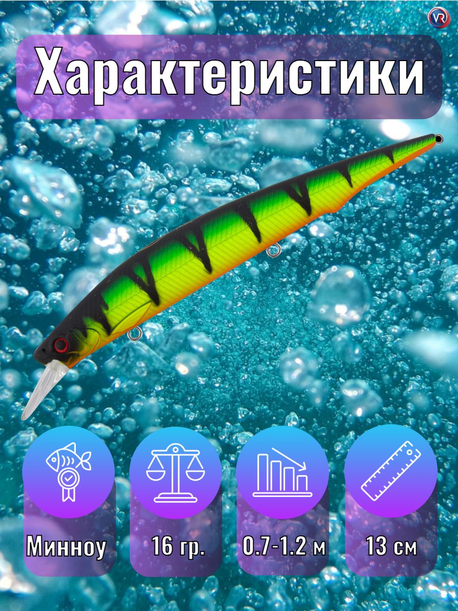Технические параметры: медленно всплывающий (SF), длина 130 мм, вес 16,0 гр., заглубление 0,7-1,2 м. Крупный воблер класса «минноу» для ловли щуки, судака, жереха и других хищных рыб на реках, прудах и озерах. Особенности дизайна: AZIAT 130SF – крупный воблер-минноу узкой вытянутой формы, плавно сужающейся к хвосту приманки. По бокам воблера имеются две разделенные боковой линией рельефные фактуры поверхности в виде косых насечек. Головная часть воблера рельефно имитирует жаберные крышки рыбки, а 3D глаза дополняют реалистичность дизайна всей приманки. Встроенная система дальнего заброса одновременно является системой баланса приманки и шумовой камерой. Воблер достаточно громкий, при проводке привлекает рыбу не только своей игрой, но и выраженным шумовым сопровождением. В оснащении воблера использованы три острых тройника, качественная фурнитура и заводные кольца. Воблер имеет современное лакокрасочное покрытие и широкий выбор расцветок в каталоге. Заброс и анимация: благодаря системе дальнего заброса AZIAT 130SF при использовании сбалансированной снасти улетает на 40-45 метров. Анимация AZIAT 130SF типична для воблеров данного класса. Основной тип проводки – твичинг (рывковая анимация). На рывке воблер уходит в сторону от своей оси с разворотом на 90+ градусов, при этом присутствует ярко выраженный «роллинг» (показывает брюшко). На паузе воблер зависает в толще воды в горизонтальном положении и медленно всплывает к поверхности. Остаточные колебания у приманки практически отсутствуют. Основные трофеи AZIAT 130SF: щука, судак, жерех. Рекомендуемый комплект снастей: удилище длиной 6,6-7,6 фута быстрого строя, с верхним тестом до 21-32 гр., катушка размера 3000-4000, шнур #0.8-1.2 по японской классификации.