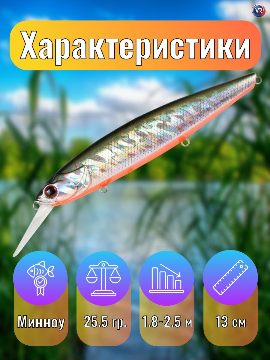 Крупный минноу для ловли на глубинах до 3,0 метров, над коряжниками и на кормовых поливах.