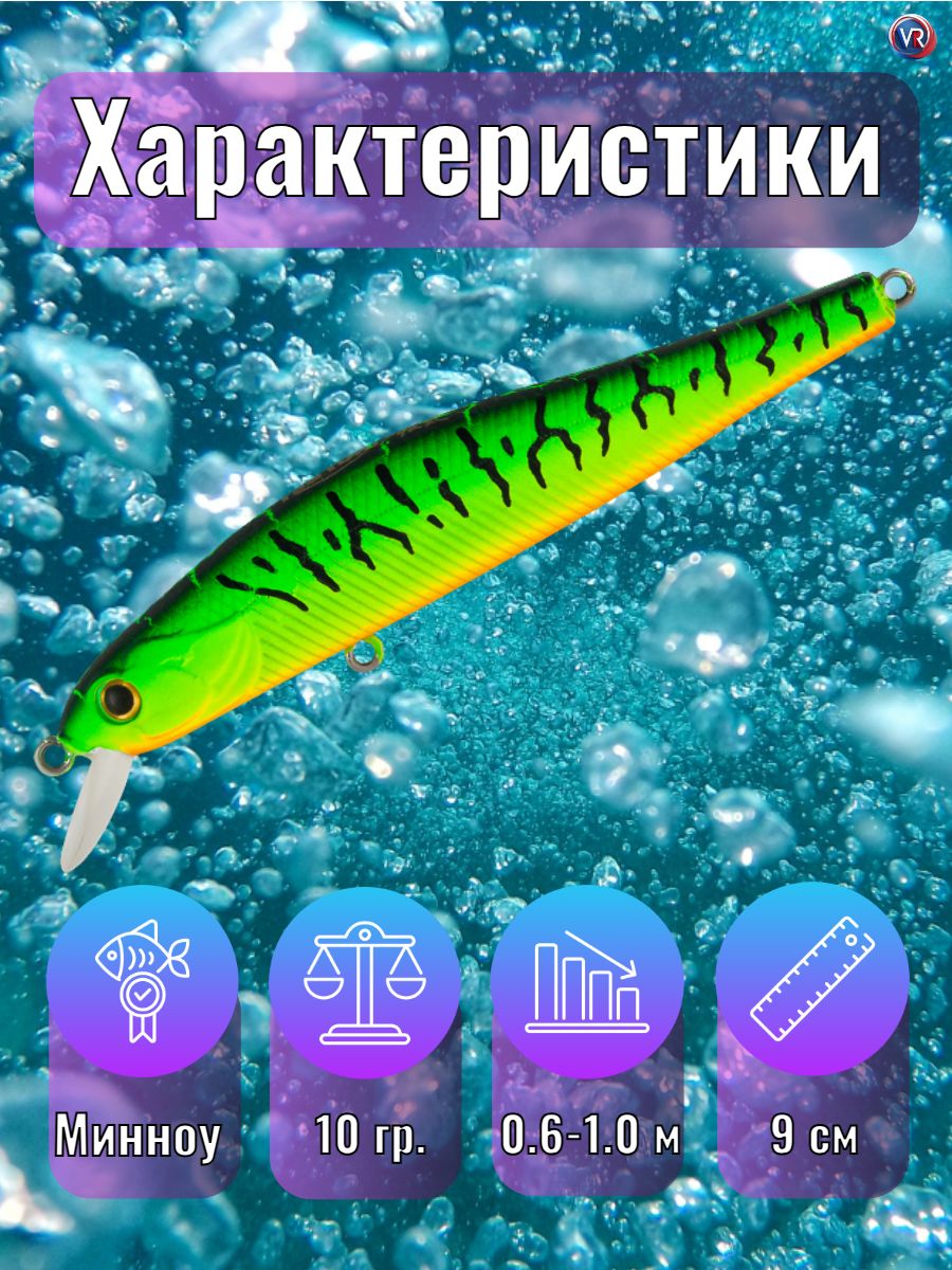 Средне-размерный воблер класса минноу для ловли на мелководье, над водной растительностью и вдоль камышовых зарослей.