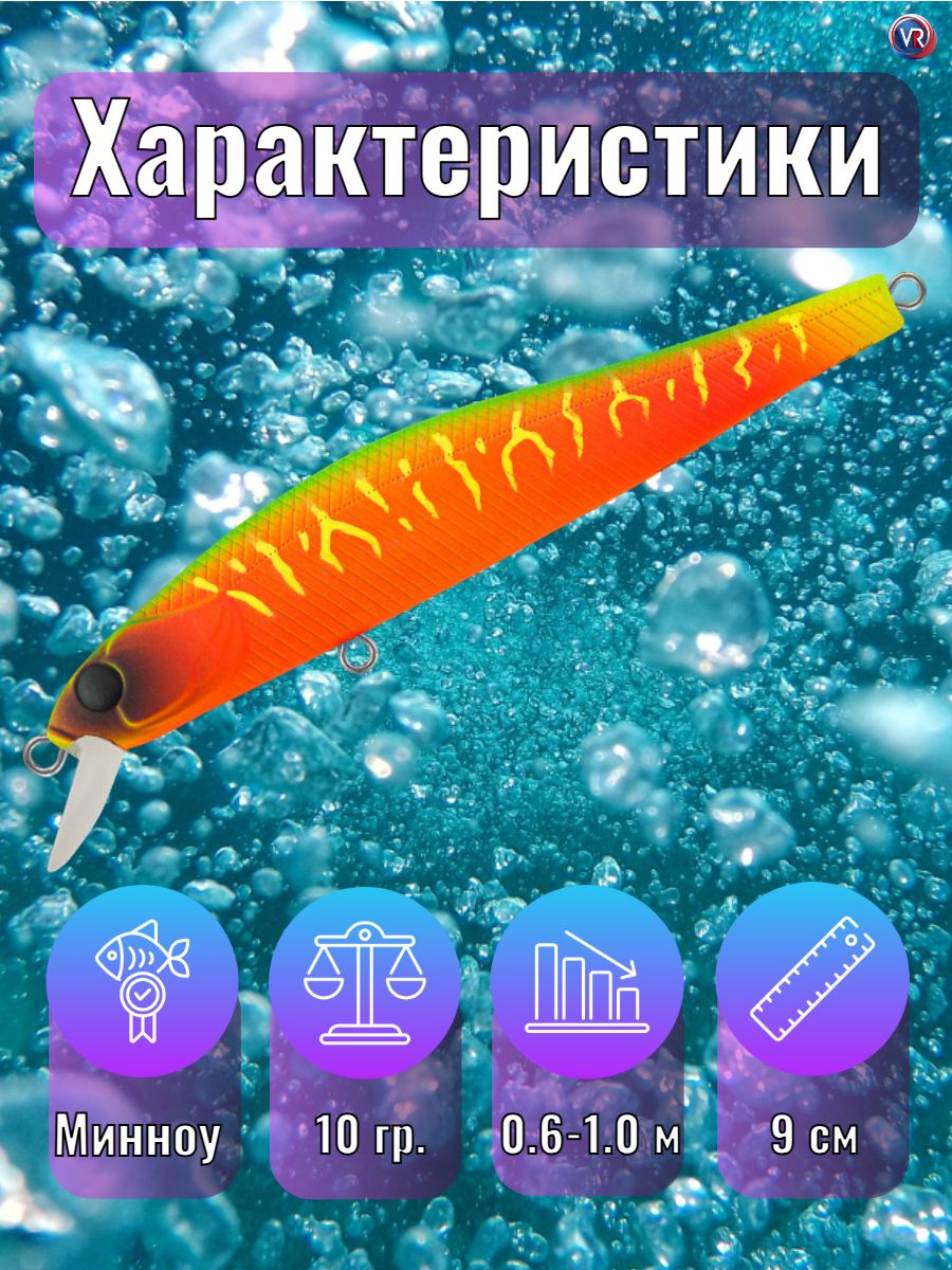 Средне-размерный воблер класса минноу для ловли на мелководье, над водной растительностью и вдоль камышовых зарослей.
