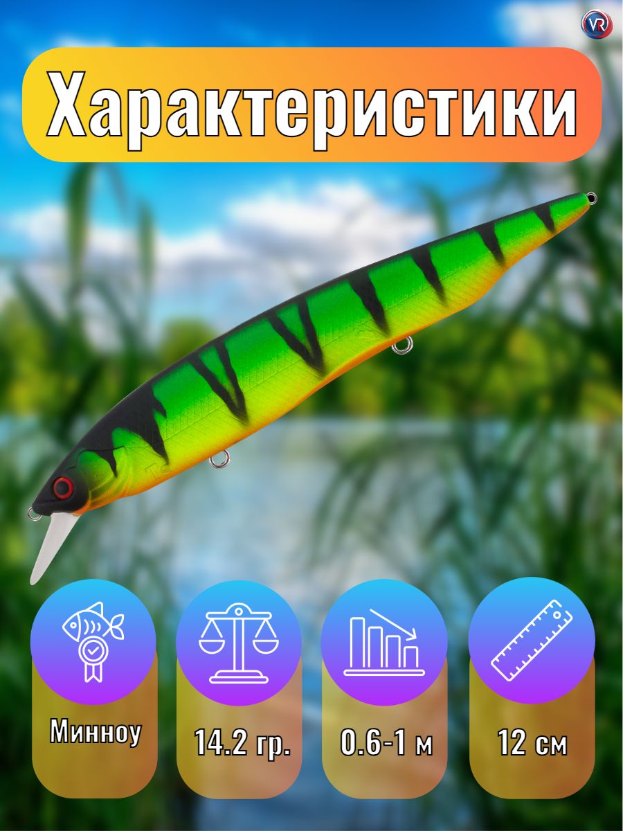 Крупный воблер класса «минноу» для ловли щуки, судака, сома и других хищных рыб на реках, прудах и озерах.