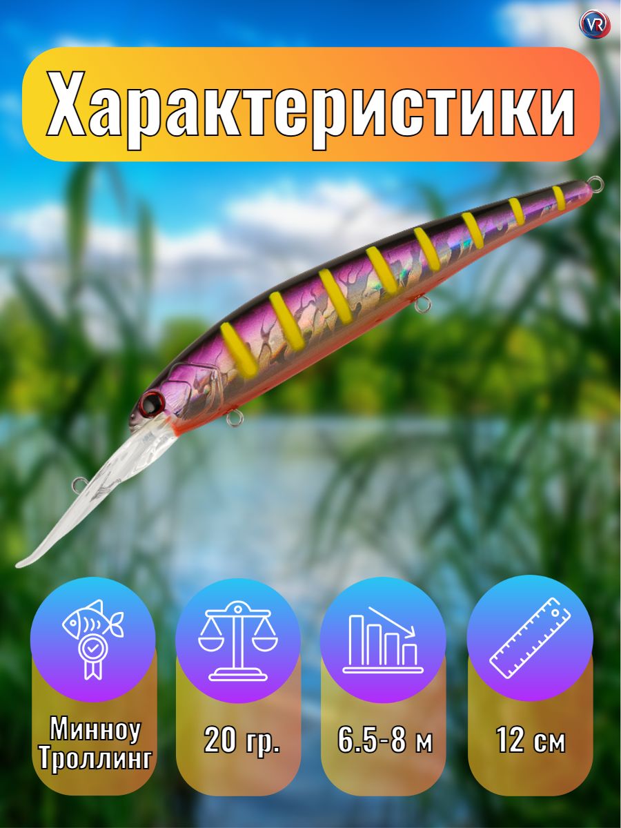Крупный минноу для ловли троллингом на неоднородном рельефе и свалах с глубинами 5-9 метров. Основные трофеи – судак, щука, сом.