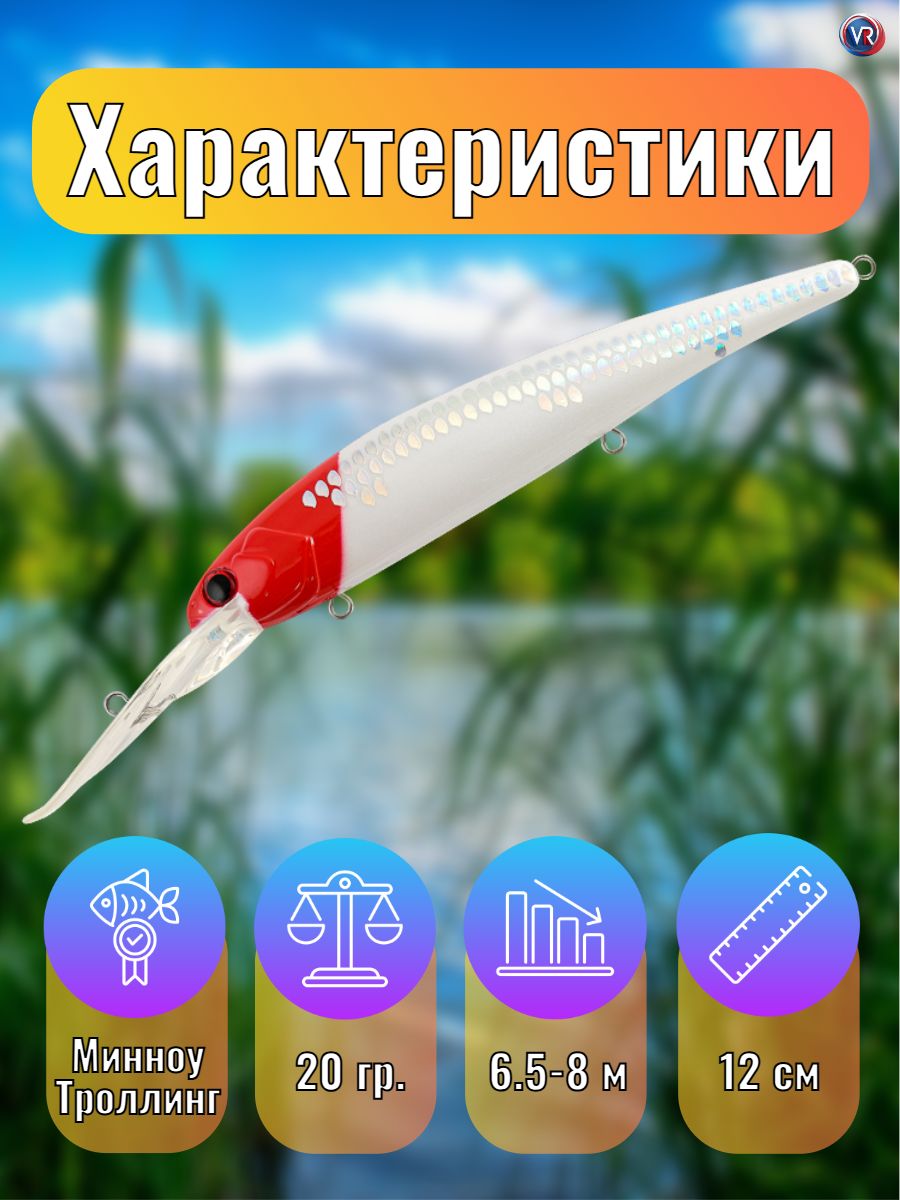 Крупный минноу для ловли троллингом на неоднородном рельефе и свалах с глубинами 5-9 метров. Основные трофеи – судак, щука, сом.