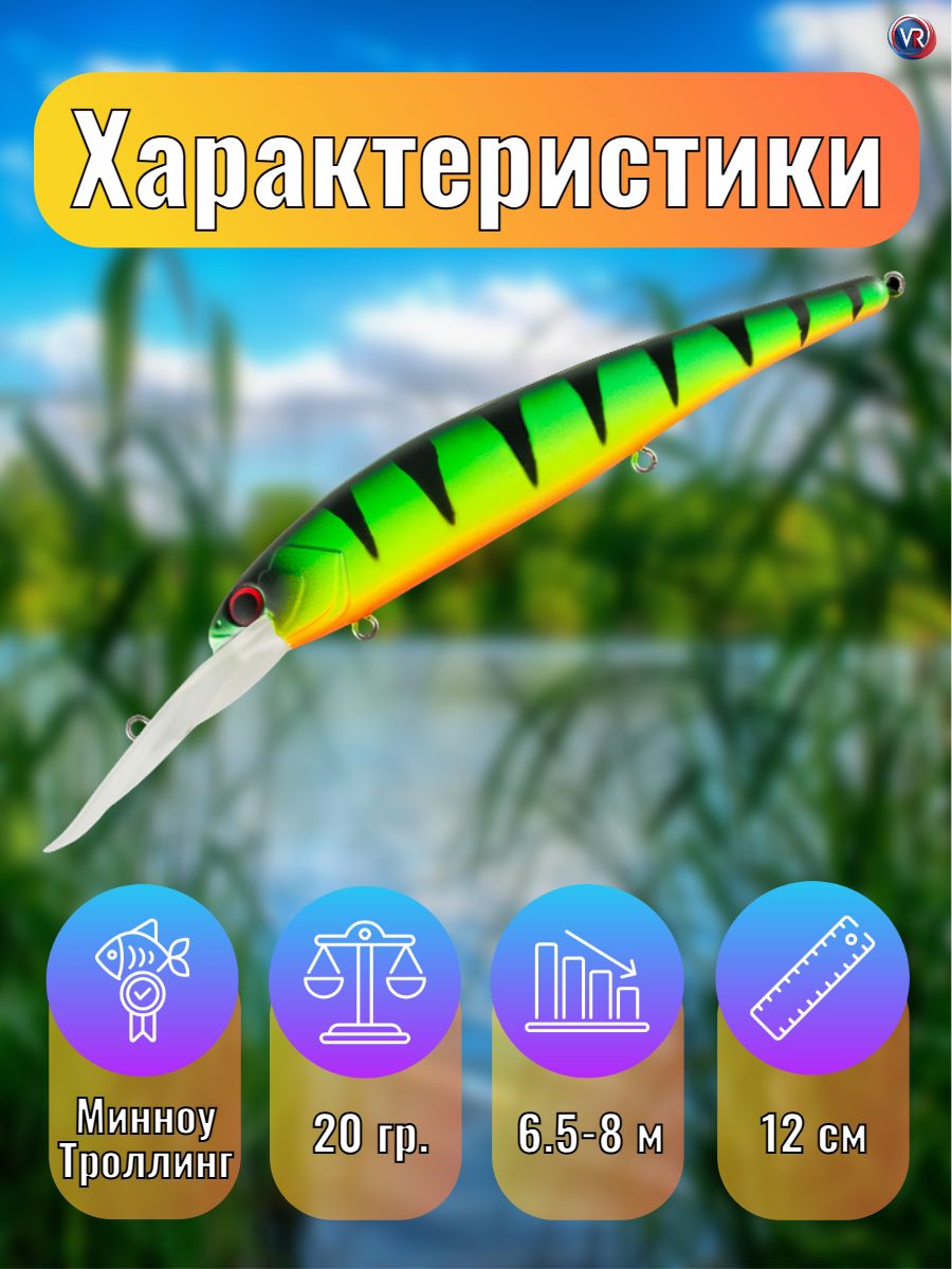 Крупный минноу для ловли троллингом на неоднородном рельефе и свалах с глубинами 5-9 метров. Основные трофеи – судак, щука, сом.