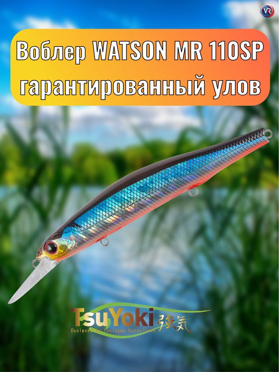 Особенности дизайна: WATSON MR 110SP имеет две, разделенные боковой линией, рельефные фактуры поверхности. Верхняя часть выполнена в виде ромбовидных насечек, нижняя - в виде косых насечек. Головная часть воблера рельефно имитирует жаберные крышки рыбки, а 3D глаза дополняют реалистичность дизайна всей приманки. WATSON MR 110SP оснащен магнитной системой дальнего заброса и системой балансировки. Лакокрасочное покрытие качественное, соответствует самым высоким современным стандартам. На приманке установлены три высококачественных тройника.