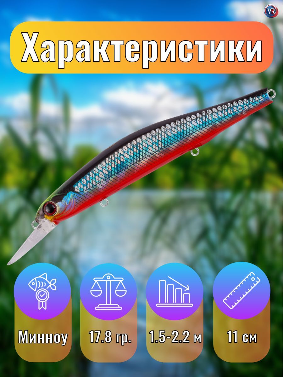 Среднеразмерный воблер-минноу для ловли на водоёмах с фоновыми глубинами от 2 до 5 метров.