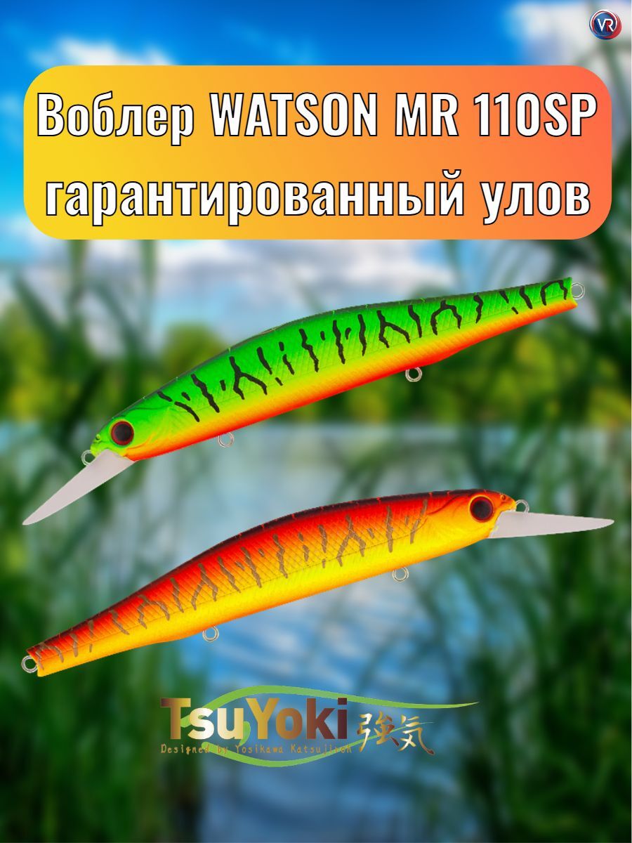 Особенности дизайна: WATSON MR 110SP имеет две, разделенные боковой линией, рельефные фактуры поверхности. Верхняя часть выполнена в виде ромбовидных насечек, нижняя - в виде косых насечек. Головная часть воблера рельефно имитирует жаберные крышки рыбки, а 3D глаза дополняют реалистичность дизайна всей приманки. WATSON MR 110SP оснащен магнитной системой дальнего заброса и системой балансировки. Лакокрасочное покрытие качественное, соответствует самым высоким современным стандартам. На приманке установлены три высококачественных тройника.